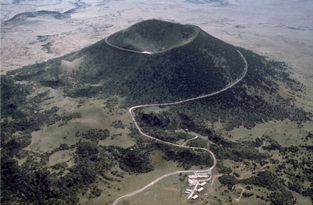 From National Monument’s website, aerial view of Capulin volcano Small whitish square west of rim